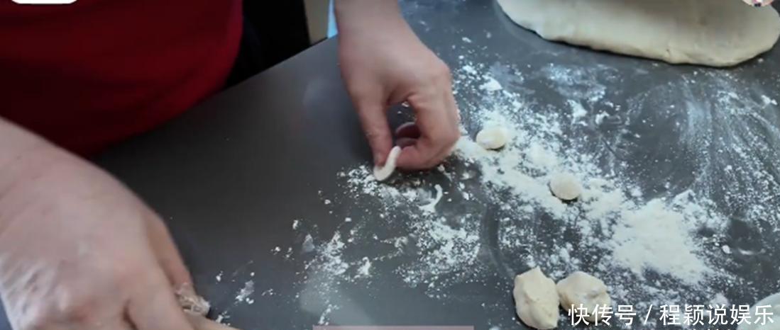 冯小刚把馅料弄好了,接着要弄饺子皮。他从盆里拿了块面团,那面已经醒过一阵。他把面团搓成一条,再掰成小块。徐朵在旁边看,她说自己连饺子皮都不会弄。冯小刚没嫌麻烦,他拿起擀面杖,给女儿做样子,教她怎么把小面块擀成圆片,中间得厚点,边上得薄点。