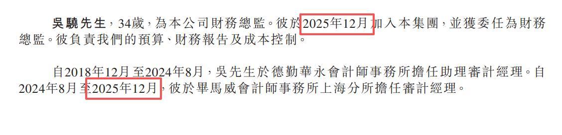 易景科技此次IPO聘请的核数师及申报会计师为毕马威会计师事务所。但公司的财务总监吴骁,恰好从毕马威上海分所离职,此前曾担任审计经理。从时间线上看,吴骁从毕马威离职与加入易景科技,都发生在2025年12月。