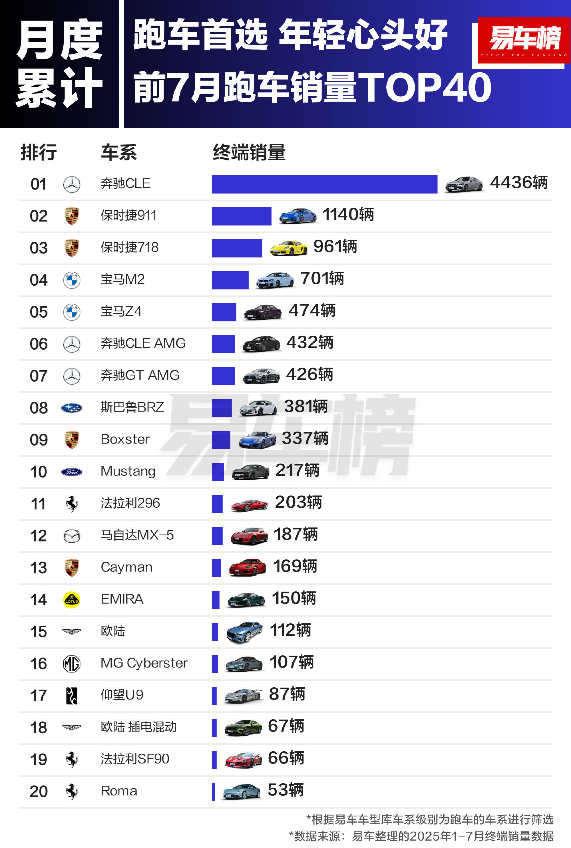 【CNMO科技消息】根据易车整理的终端销量数据能加杠杆的炒股软件,2025年1-7月,中国汽车市场上的跑车销量排名为: