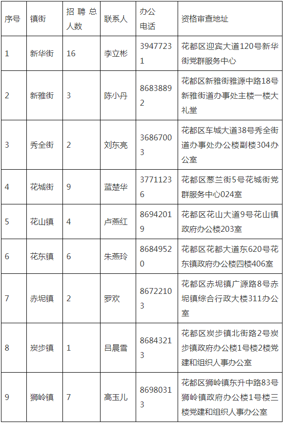 1.广州市花都区2025年公开招聘社区专职工作人员职位表