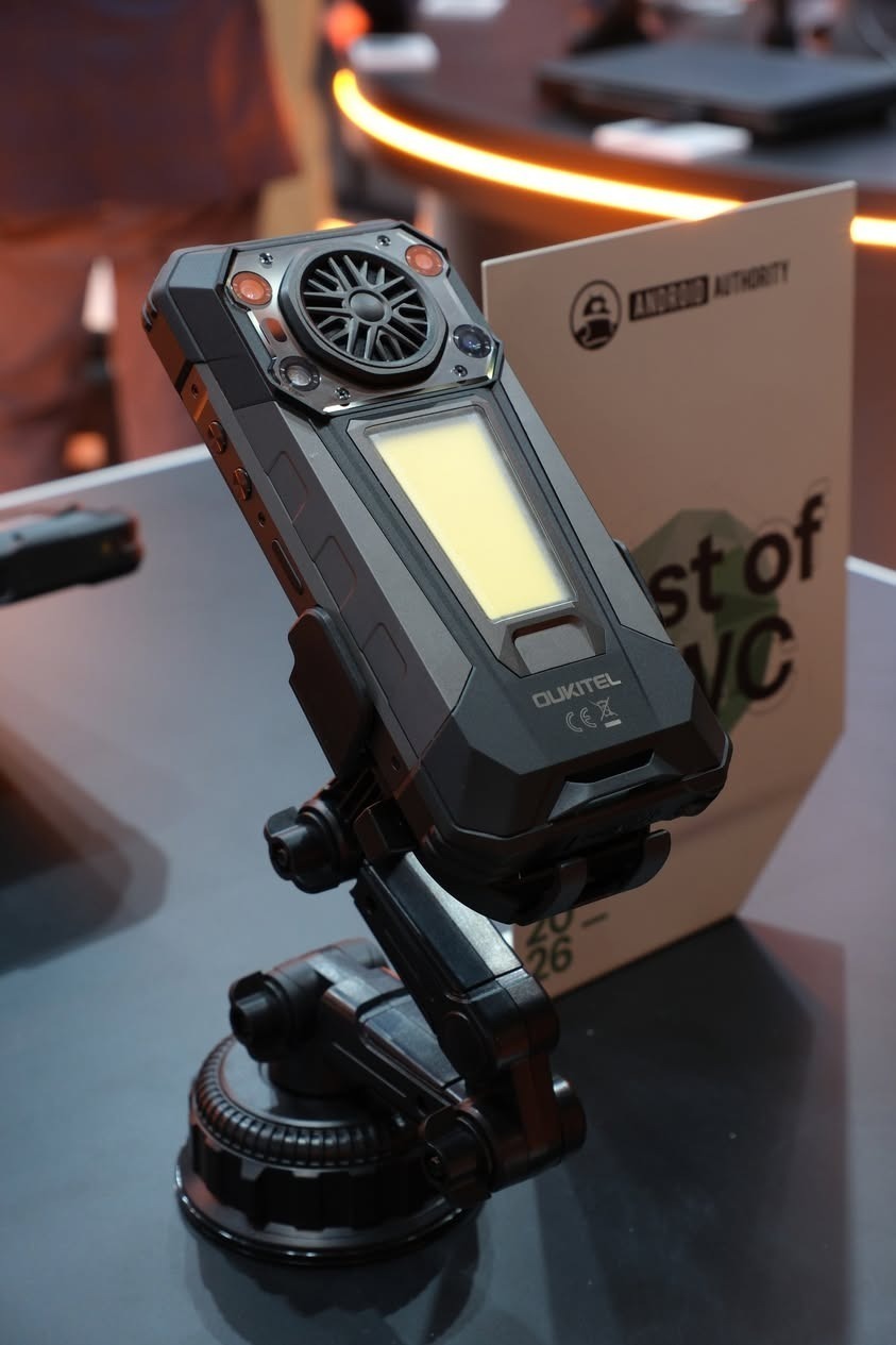同场展示的Oukitel WP61则定位旗舰级三防设备,同样配备20000mAh大电池,且支持45W有线快充,续航补能效率更高。这款机型还新增了卫星紧急通信、对讲机功能,并搭载热成像相机,可精准检测墙后火情等各类热源,专业户外与应急属性更为突出。