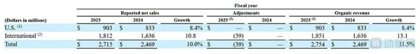 MiniMed的国际化程度较高,来自美国以外市场的营收达到18.1亿美元,占比达到66.7%。同时,美国以外市场的营收增长率也明显更高,2025财年相比2024财年营收增长达到10.8%。